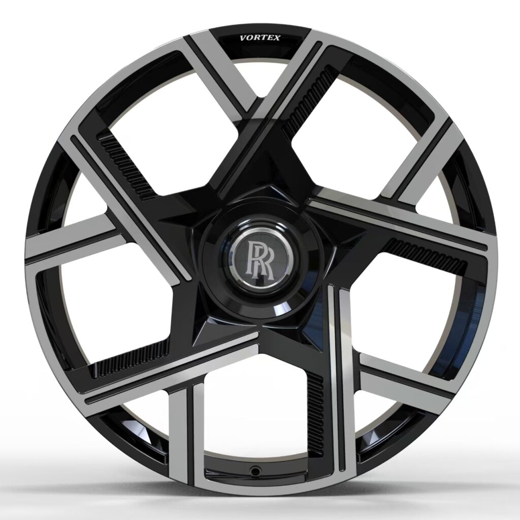 The VX-104 VORTEX Wheel embodies luxury and performance through its intricate multi-spoke forged design, crafted from aerospace-grade 6061-T6 aluminum for exceptional strength and lightness. Its most exclusive feature is the floating central cap, a hallmark detail first made iconic by Rolls-Royce, ensuring the emblem remains perfectly upright even while in motion. This refined touch can also be personalized with bespoke emblem options, allowing each wheel to carry a unique identity that reflects the owner’s style. With commanding presence, uncompromising strength, and meticulous craftsmanship, the VX-104 stands as a true expression of elegance and engineering.