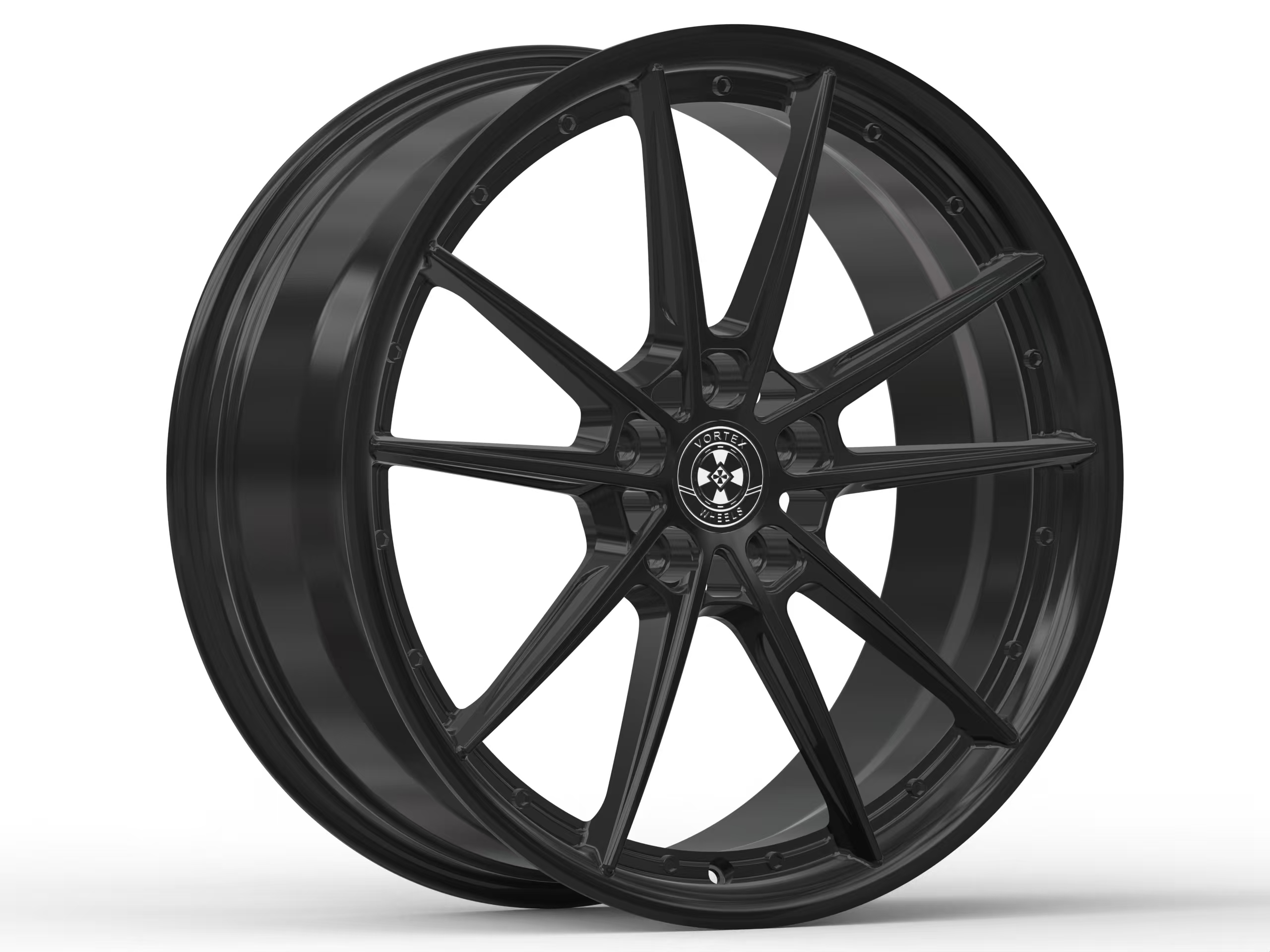 The VX-107 VORTEX Wheel showcases refined motorsport engineering in a sleek monoblock form yet looking like 2 pieces. Its elongated multi-spoke architecture is designed to distribute load evenly while keeping weight exceptionally low, resulting in sharper handling and a more responsive driving experience. The flowing spoke lines create a clean, performance-oriented aesthetic similar to the VX-205, yet with an even lighter and more streamlined silhouette.