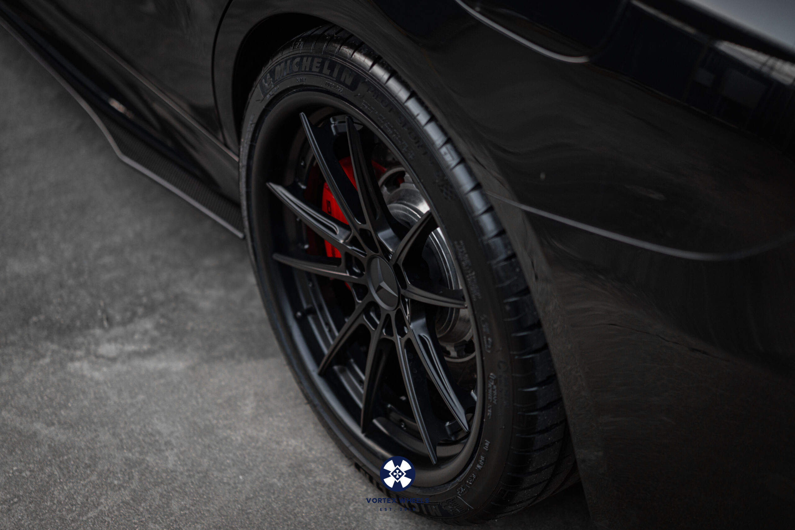 The VX-107 VORTEX Wheel showcases refined motorsport engineering in a sleek monoblock form yet looking like 2 pieces. Its elongated multi-spoke architecture is designed to distribute load evenly while keeping weight exceptionally low, resulting in sharper handling and a more responsive driving experience. The flowing spoke lines create a clean, performance-oriented aesthetic similar to the VX-205, yet with an even lighter and more streamlined silhouette. Forged from aerospace-grade 6061-T6 aluminum and CNC-machined with meticulous precision, the VX-107 delivers impressive rigidity, reduced unsprung mass, and a modern motorsport look that suits high-performance sedans, coupes, and GT vehicles. Elegant, engineered, and effortlessly dynamic — the VX-107 brings lightweight sophistication to every drive. Finish Shown: Gloss Black Available in 19”, 20”, 21″, 22″, 23”, 24” Other wheels in this series VX-101, VX-102, VX-103, VX-104, VX-105, VX-106