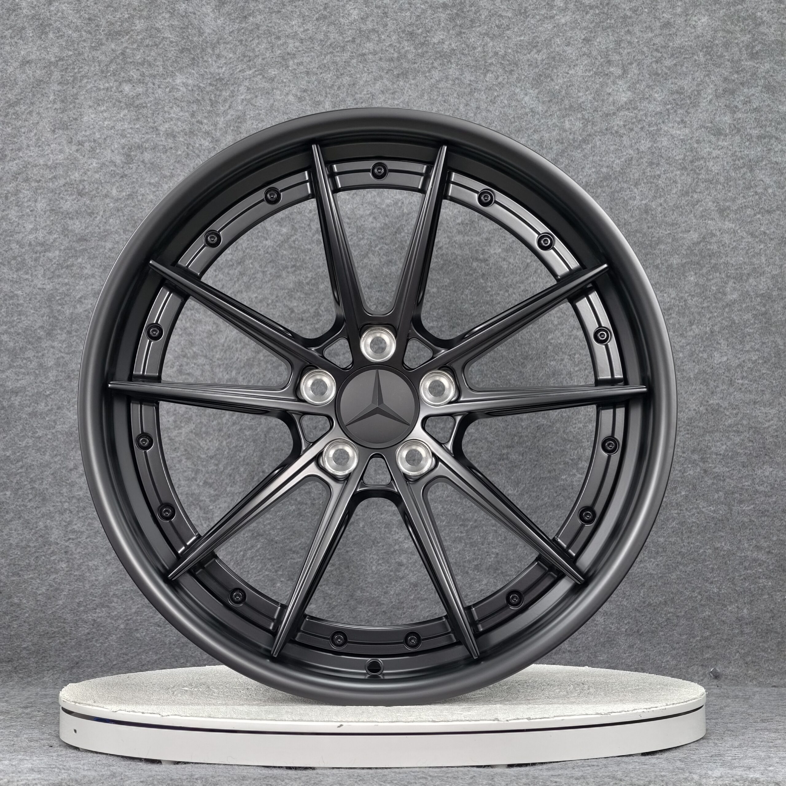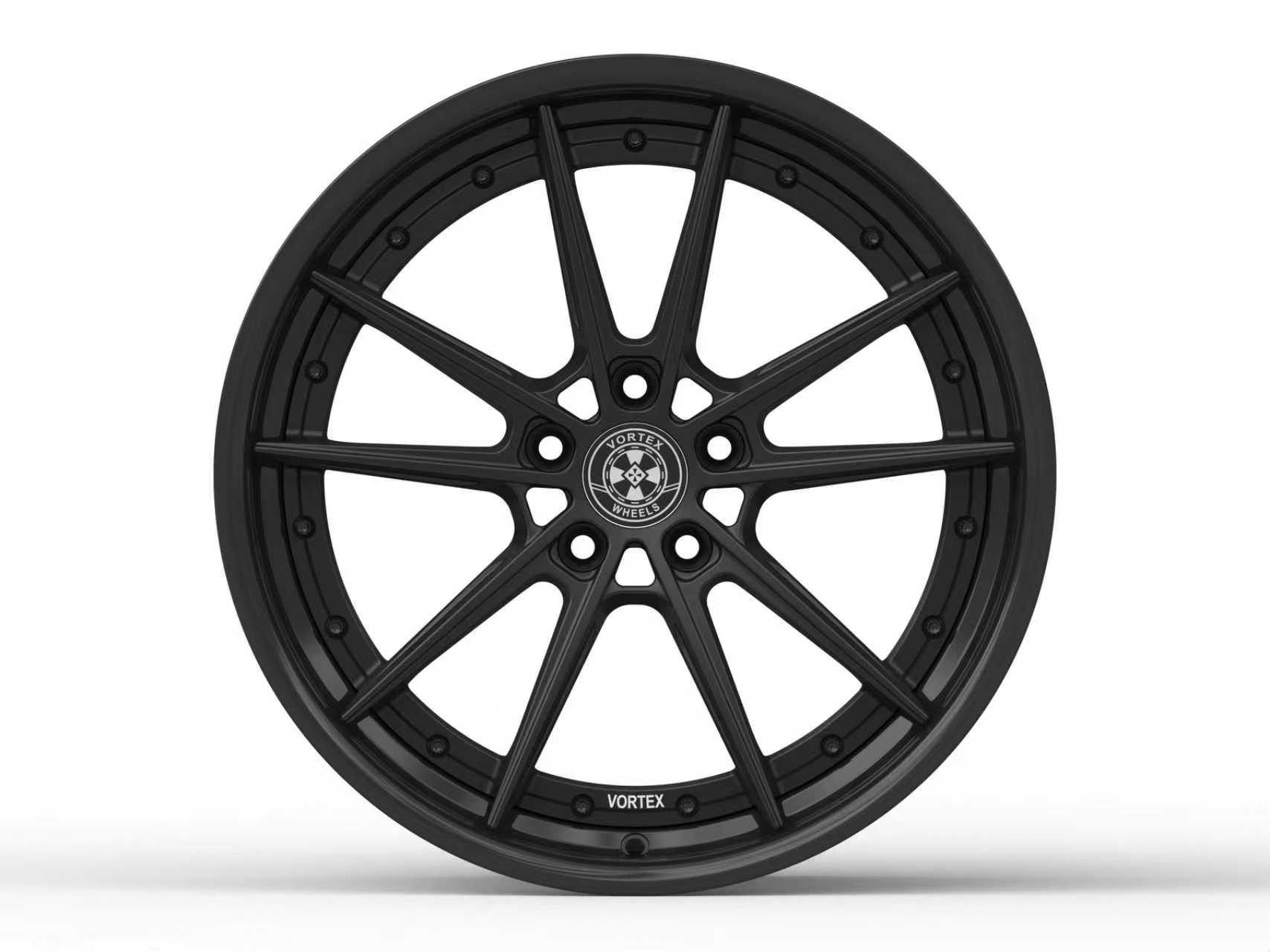 The VX-205 VORTEX Wheel brings motorsport precision into a luxurious 2-piece forged construction. Its symmetrical multi-spoke layout is engineered for exceptional rigidity while keeping weight to a minimum, ensuring sharper handling and quicker response. The visible bolt assembly around the rim highlights the craftsmanship of a true 2-piece design, giving the wheel a deeper sense of dimension and a high-performance aesthetic. Forged from aerospace-grade 6061-T6 aluminum and CNC-machined with meticulous detail, the VX-205 combines lightweight strength, structural integrity, and timeless elegance — making it an ideal choice for sports cars, GT models, and performance-focused luxury vehicles.